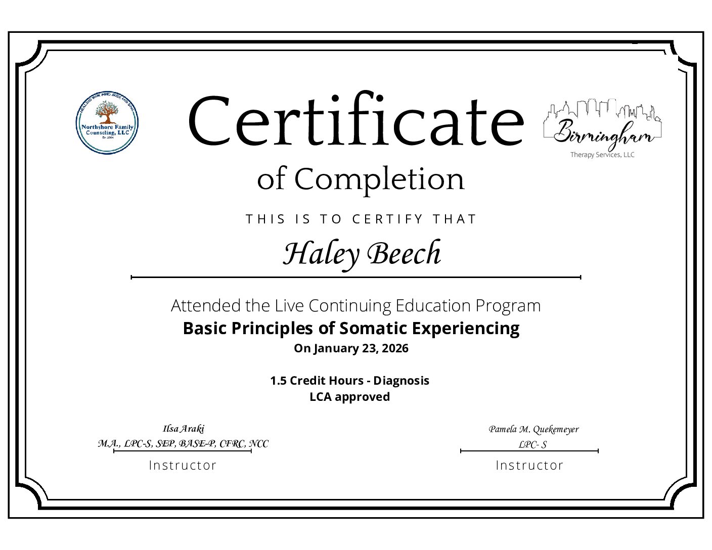 to help clients process difficult emotions and traumatic experiences. Haley also understands that
