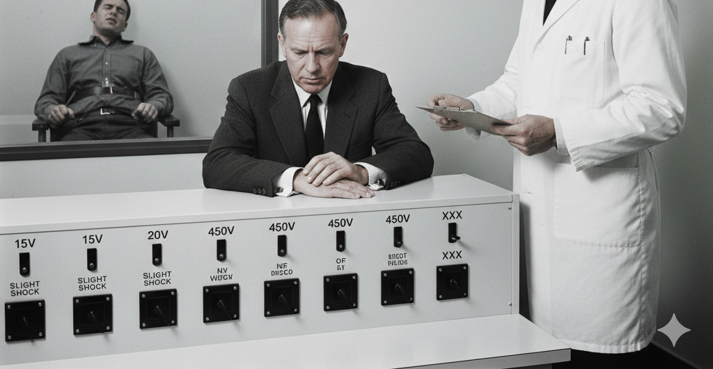 In 1961, Stanley Milgram conducted an experiment that would fundamentally challenge our understanding of human obedience and moral authority. Participants were instructed by a man in a white coat, an apparent authority figure, to administer what they believed were increasingly harmful electric shocks to another person. The instructions escalated from causing minor discomfort to what participants believed would end the person’s life. Most participants completed the entire sequence. The experiment was ostensibly designed to test whether something like Nazi Germany could happen anywhere, and that became the primary way it was publicized. However, the findings revealed far more complex and disturbing patterns about human nature and institutional authority.