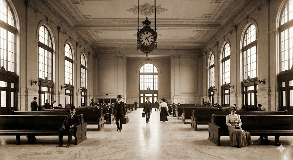 The architects delivered. The building featured a massive arched entrance, intricate terra cotta detailing, and an interior waiting room that soared toward a coffered ceiling. Natural light flooded through enormous windows. The scale was deliberate, meant to inspire a sense of awe that would linger long after the visitor had collected their luggage and stepped outside.